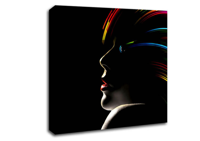 Rainbow Hair Square Canvas Print handmade in the UK. Stretched over a 2 inch thick wooden box frame, ready to hang on your wall.