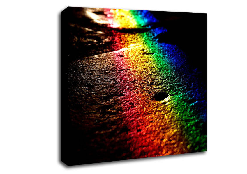 Rainbow Reflection Square Canvas Print handmade in the UK. Stretched over a 2 inch thick wooden box frame, ready to hang on your wall.