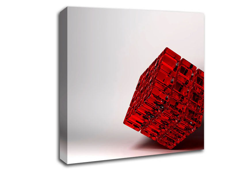 Red Jelly Cube Square Canvas Print handmade in the UK. Stretched over a 2 inch thick wooden box frame, ready to hang on your wall.