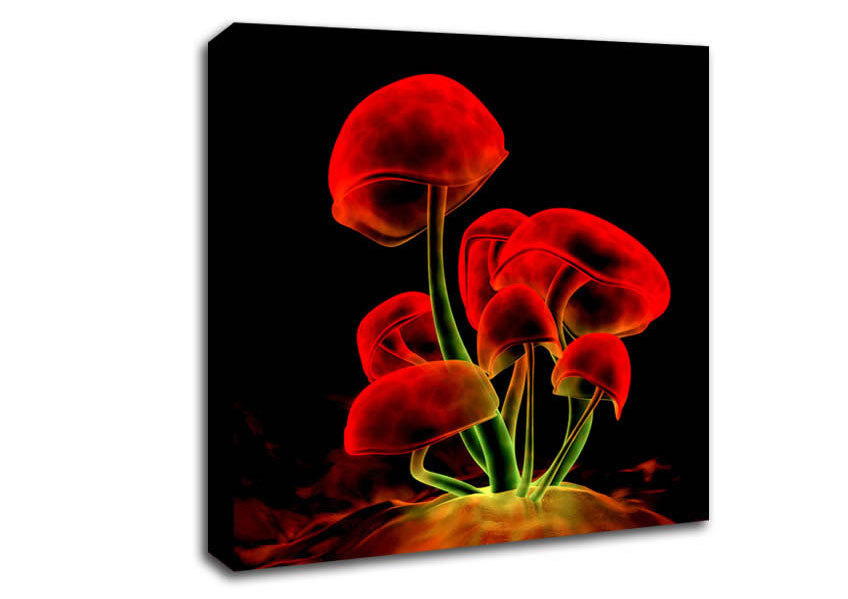 Red Magic Mushrooms Square Canvas Print handmade in the UK. Stretched over a 2 inch thick wooden box frame, ready to hang on your wall.