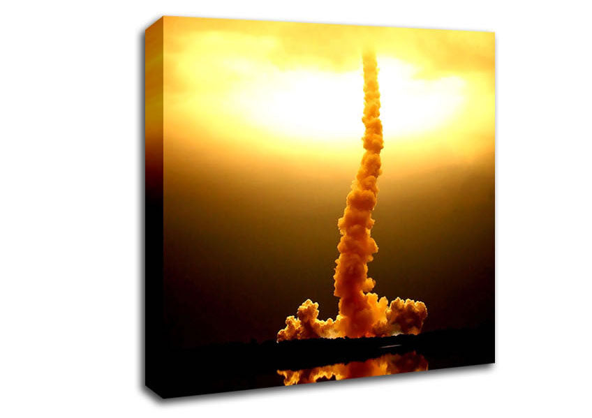 Space Shuttle Launch Square Canvas Print handmade in the UK. Stretched over a 2 inch thick wooden box frame, ready to hang on your wall.