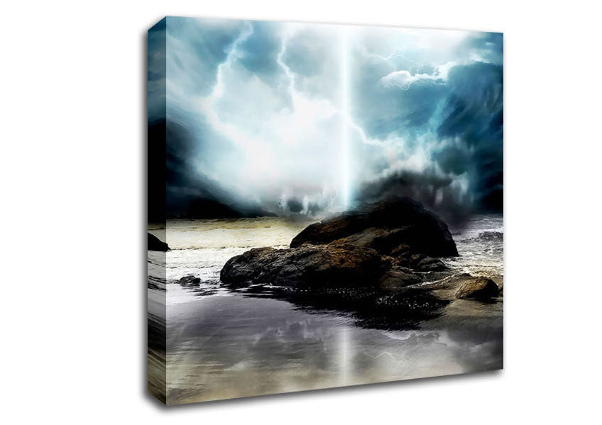 Storm On The Beach Square Canvas Print handmade in the UK. Stretched over a 2 inch thick wooden box frame, ready to hang on your wall.
