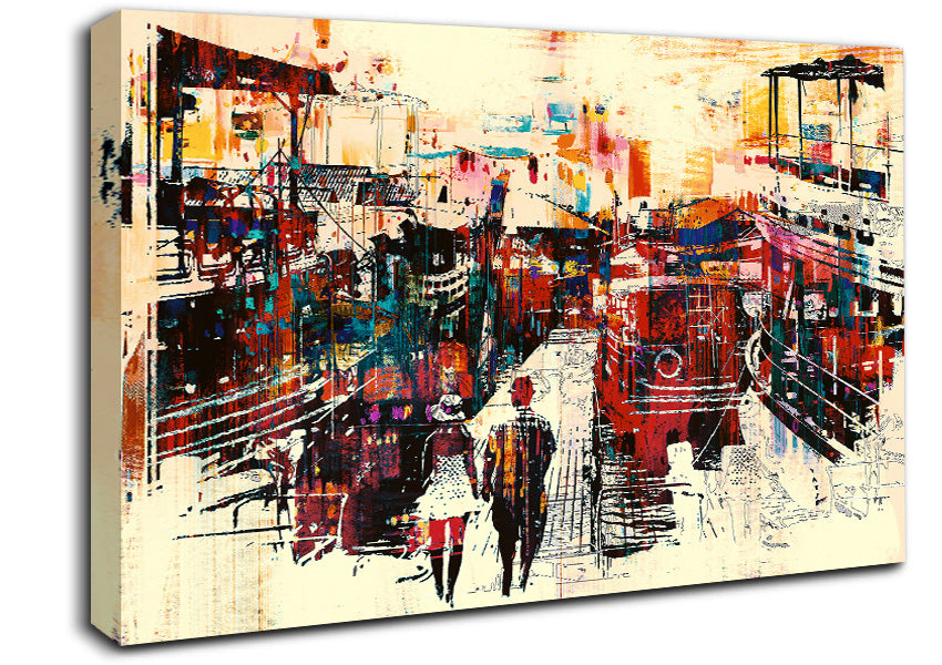 Adventure In The City Canvas Print handmade in the UK. Stretched over a 2 inch thick wooden box frame, ready to hang on your wall.