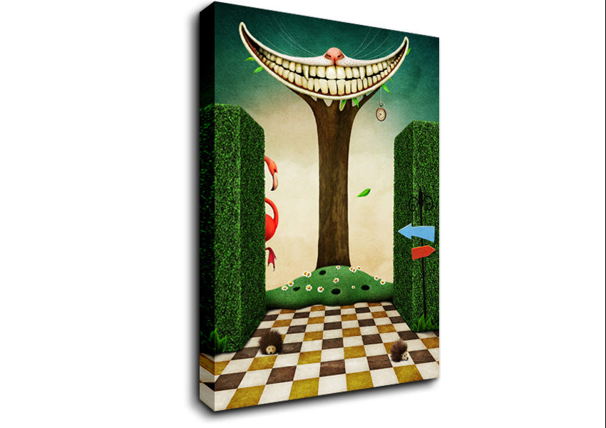 Alice In Wonderland Cheshire Cat Canvas Print handmade in the UK. Stretched over a 2 inch thick wooden box frame, ready to hang on your wall.