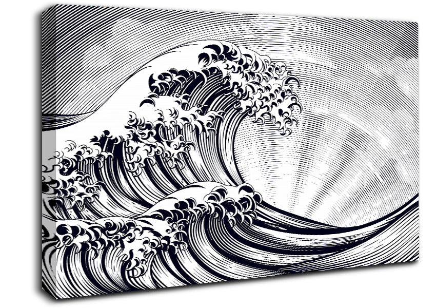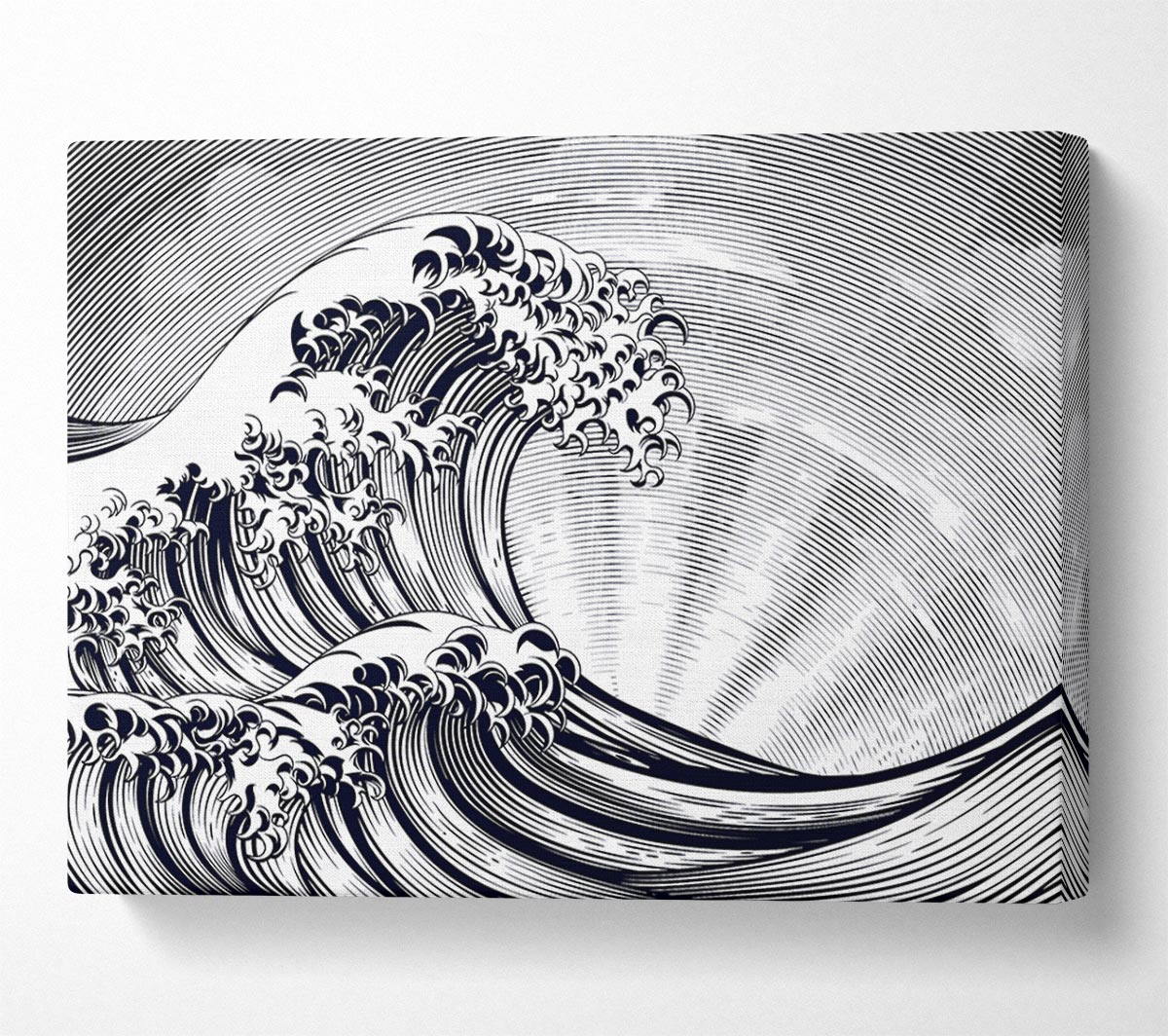 Black Wave Sun Beam Canvas Print handmade in the UK. Stretched over a 2 inch thick wooden box frame, ready to hang on your wall.
