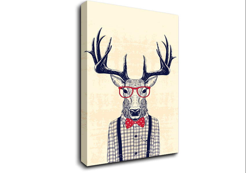 Clever Stag Canvas Print handmade in the UK. Stretched over a 2 inch thick wooden box frame, ready to hang on your wall.
