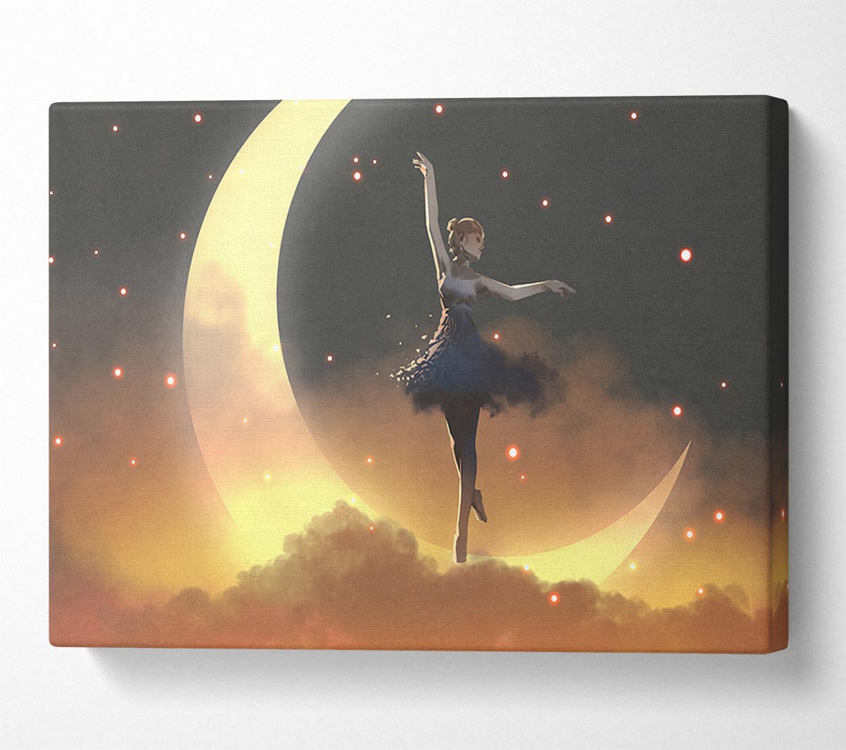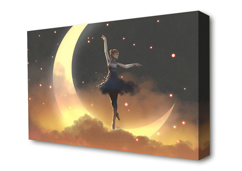 Dancing On The Moon Canvas Print handmade in the UK. Stretched over a 2 inch thick wooden box frame, ready to hang on your wall.