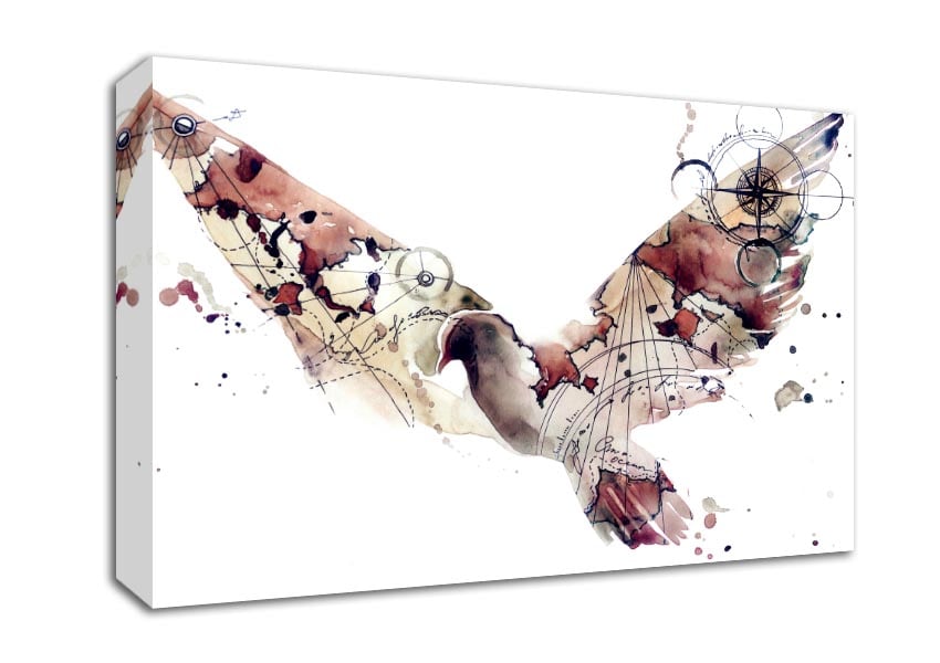 Dove in flight watercolour maps Canvas Print handmade in the UK. Stretched over a 2 inch thick wooden box frame, ready to hang on your wall.