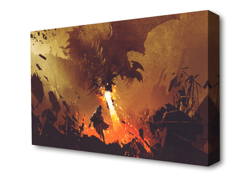 Fighting The Fire Dragon Canvas Print handmade in the UK. Stretched over a 2 inch thick wooden box frame, ready to hang on your wall.