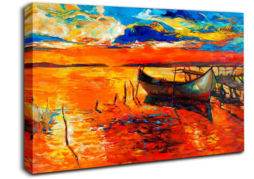 Fire Orange Waters Canvas Print handmade in the UK. Stretched over a 2 inch thick wooden box frame, ready to hang on your wall.