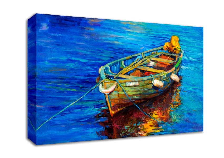 Fishing boat illiustration Canvas Print handmade in the UK. Stretched over a 2 inch thick wooden box frame, ready to hang on your wall.