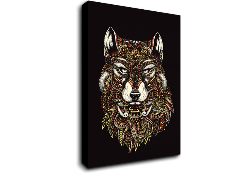 Indian Wolf Canvas Print handmade in the UK. Stretched over a 2 inch thick wooden box frame, ready to hang on your wall.
