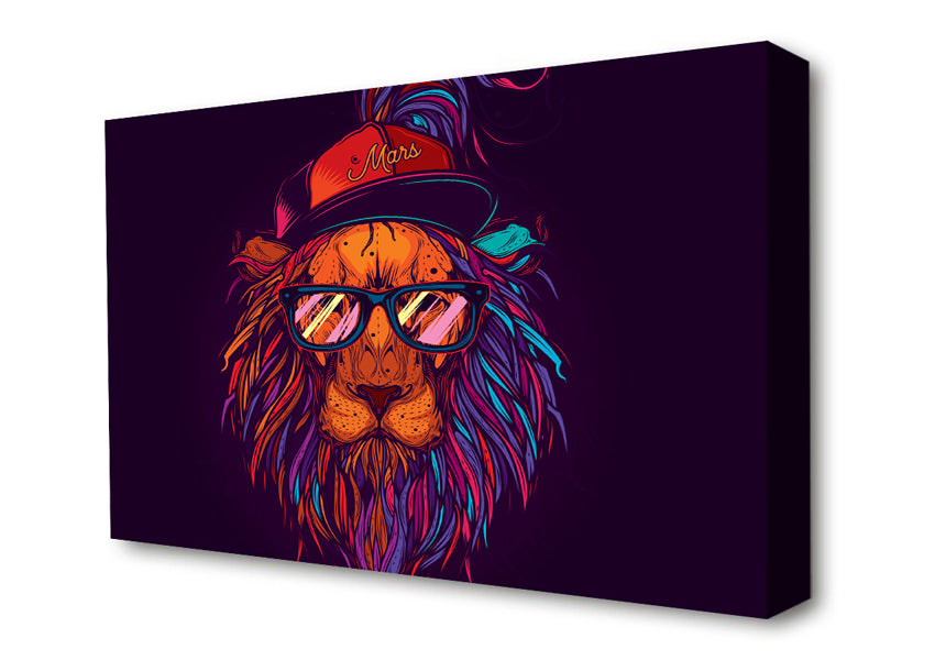 Lion Sunglasses Canvas Print handmade in the UK. Stretched over a 2 inch thick wooden box frame, ready to hang on your wall.