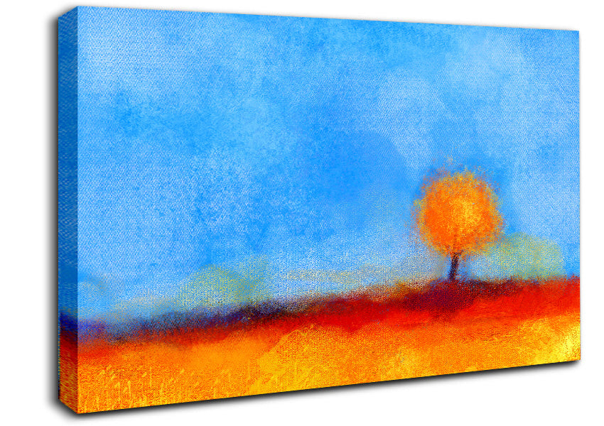Lonesome Orange Tree Canvas Print handmade in the UK. Stretched over a 2 inch thick wooden box frame, ready to hang on your wall.