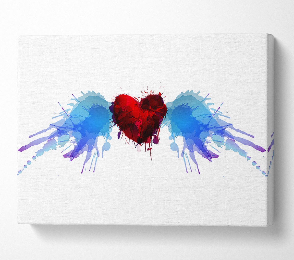 Love Heart Birds Canvas Print handmade in the UK. Stretched over a 2 inch thick wooden box frame, ready to hang on your wall.