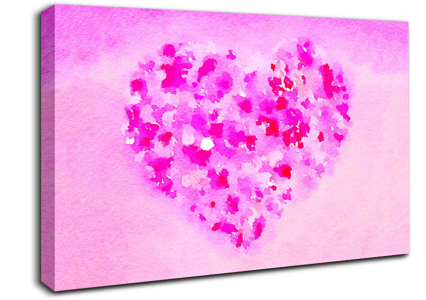 Love Heart Of Petals Canvas Print handmade in the UK. Stretched over a 2 inch thick wooden box frame, ready to hang on your wall.