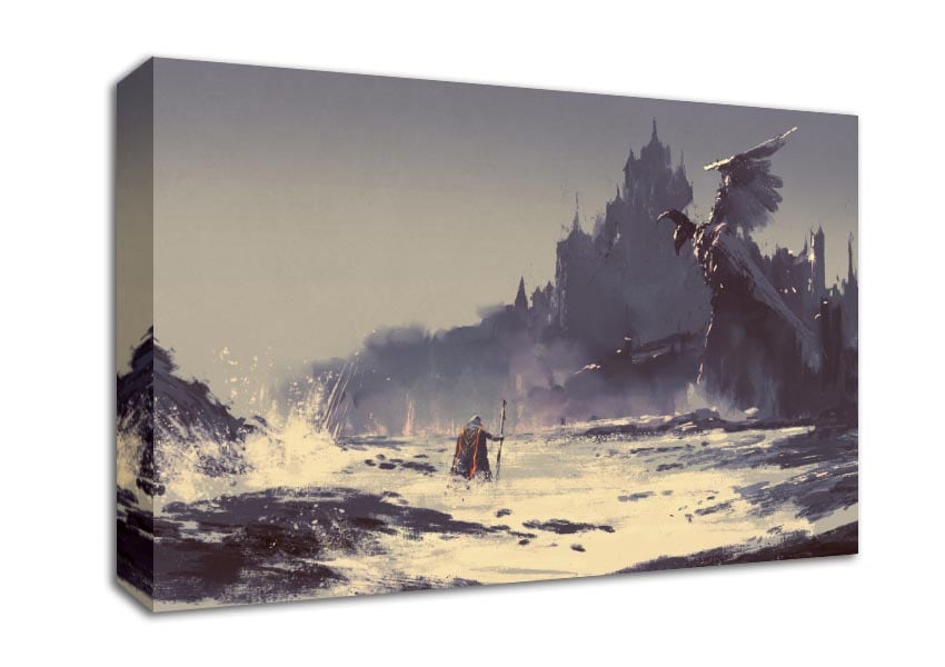 Mage fighting the beast Canvas Print handmade in the UK. Stretched over a 2 inch thick wooden box frame, ready to hang on your wall.