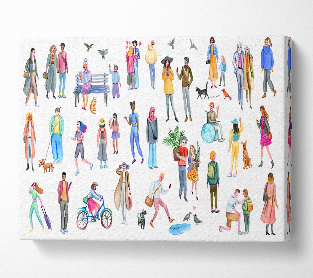 Multicultured World Canvas Print handmade in the UK. Stretched over a 2 inch thick wooden box frame, ready to hang on your wall.