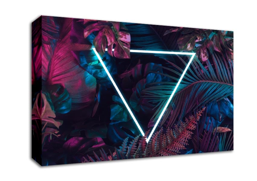 Neon triangle in the jungle Canvas Print handmade in the UK. Stretched over a 2 inch thick wooden box frame, ready to hang on your wall.