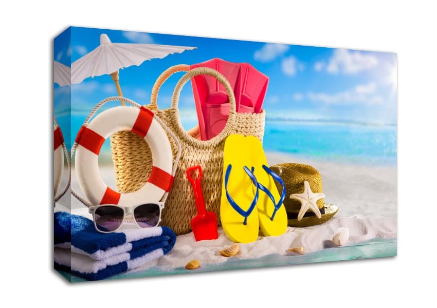 On the beach fun Canvas Print handmade in the UK. Stretched over a 2 inch thick wooden box frame, ready to hang on your wall.