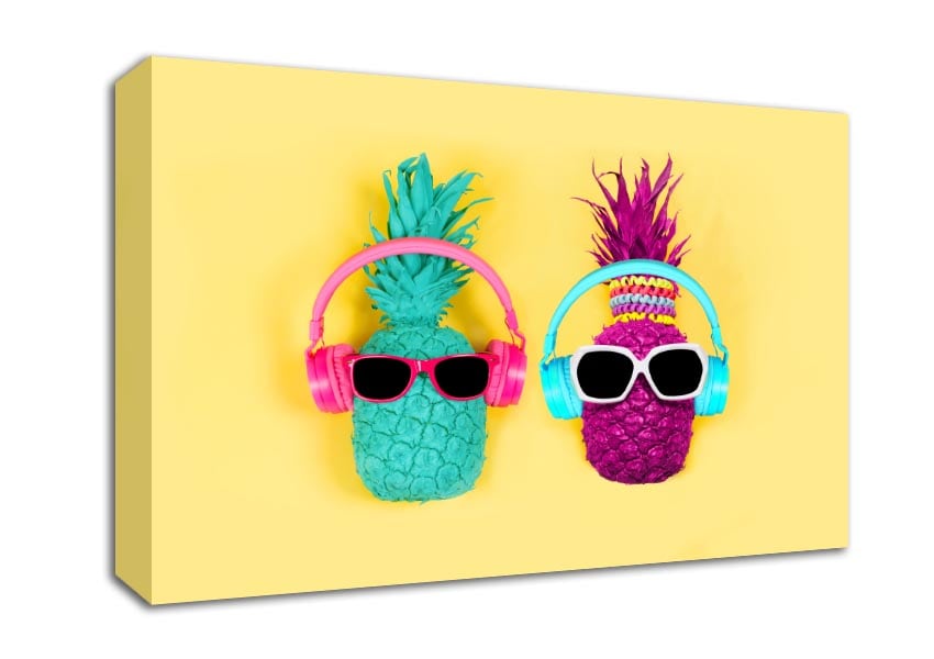 Pineapple Colours and headphones Canvas Print handmade in the UK. Stretched over a 2 inch thick wooden box frame, ready to hang on your wall.