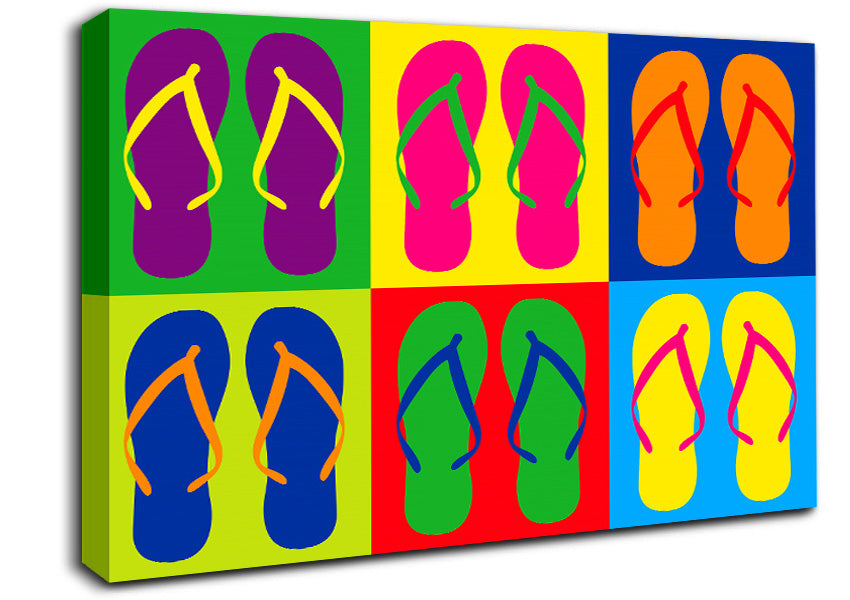 Pop Art Flip Flops Canvas Print handmade in the UK. Stretched over a 2 inch thick wooden box frame, ready to hang on your wall.