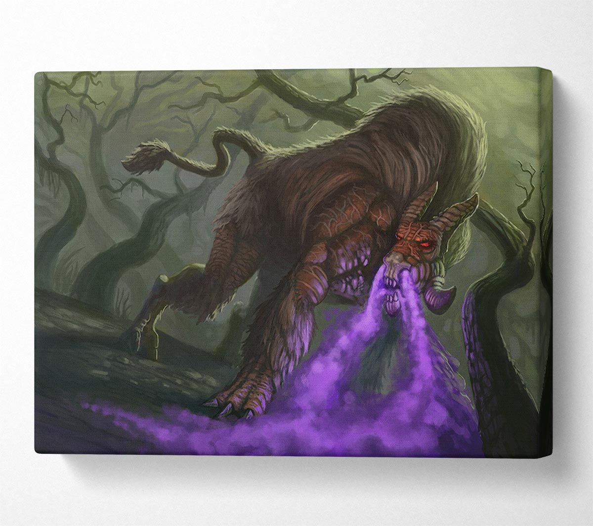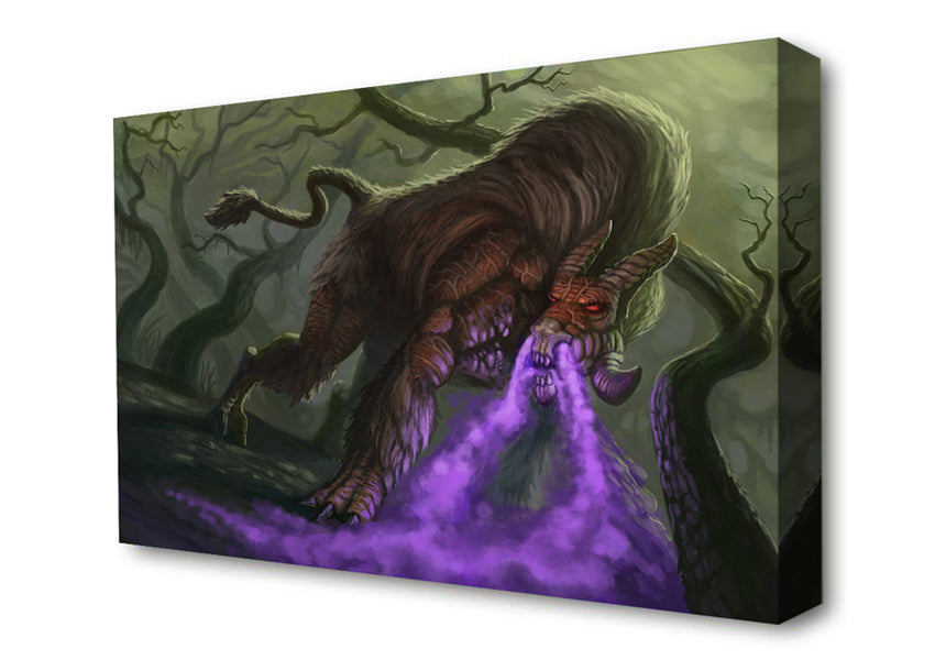 Purple Smoke Breathing Creature Canvas Print handmade in the UK. Stretched over a 2 inch thick wooden box frame, ready to hang on your wall.