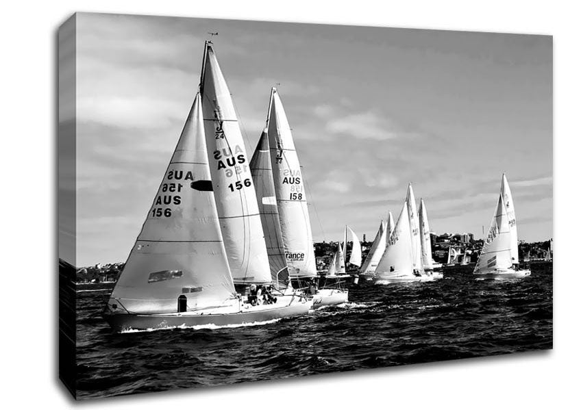 Sailboat Dream B n W Canvas Print handmade in the UK. Stretched over a 2 inch thick wooden box frame, ready to hang on your wall.