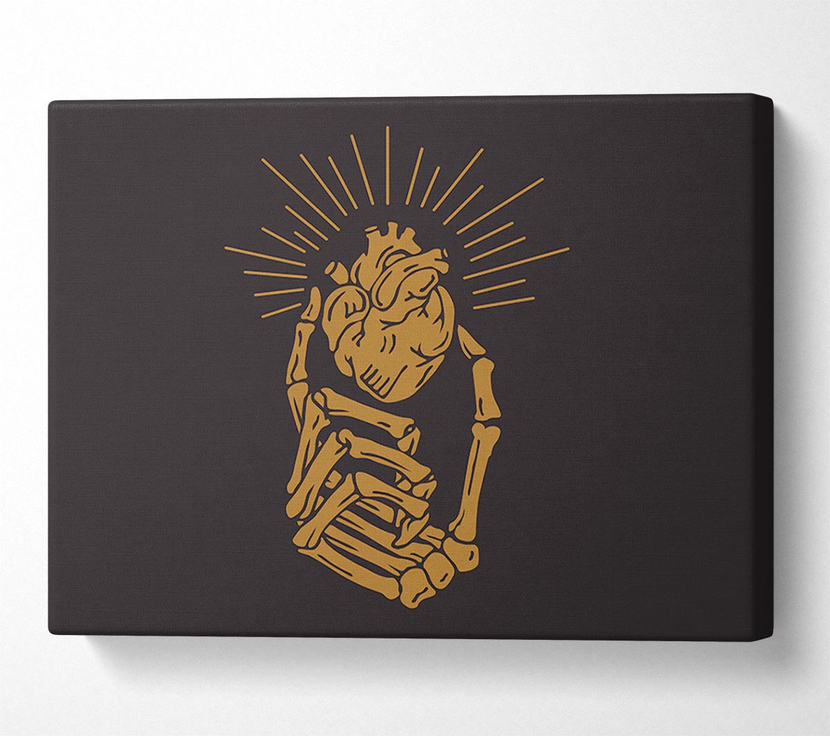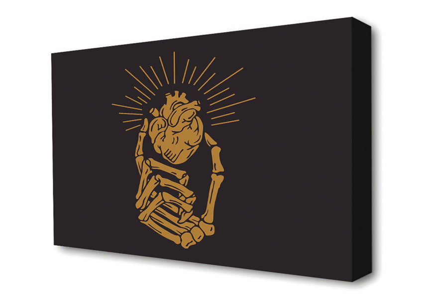 Skeleton Hand On Heart Canvas Print handmade in the UK. Stretched over a 2 inch thick wooden box frame, ready to hang on your wall.