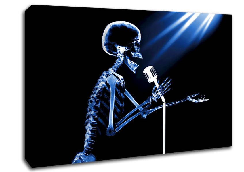 Skeleton Singer Canvas Print handmade in the UK. Stretched over a 2 inch thick wooden box frame, ready to hang on your wall.