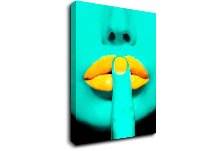 Sshhh Orange Lips Canvas Print handmade in the UK. Stretched over a 2 inch thick wooden box frame, ready to hang on your wall.