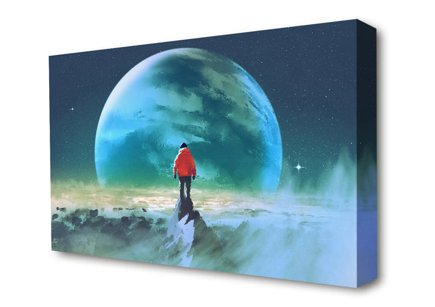 Staring At The Moon Watercolour Canvas Print handmade in the UK. Stretched over a 2 inch thick wooden box frame, ready to hang on your wall.