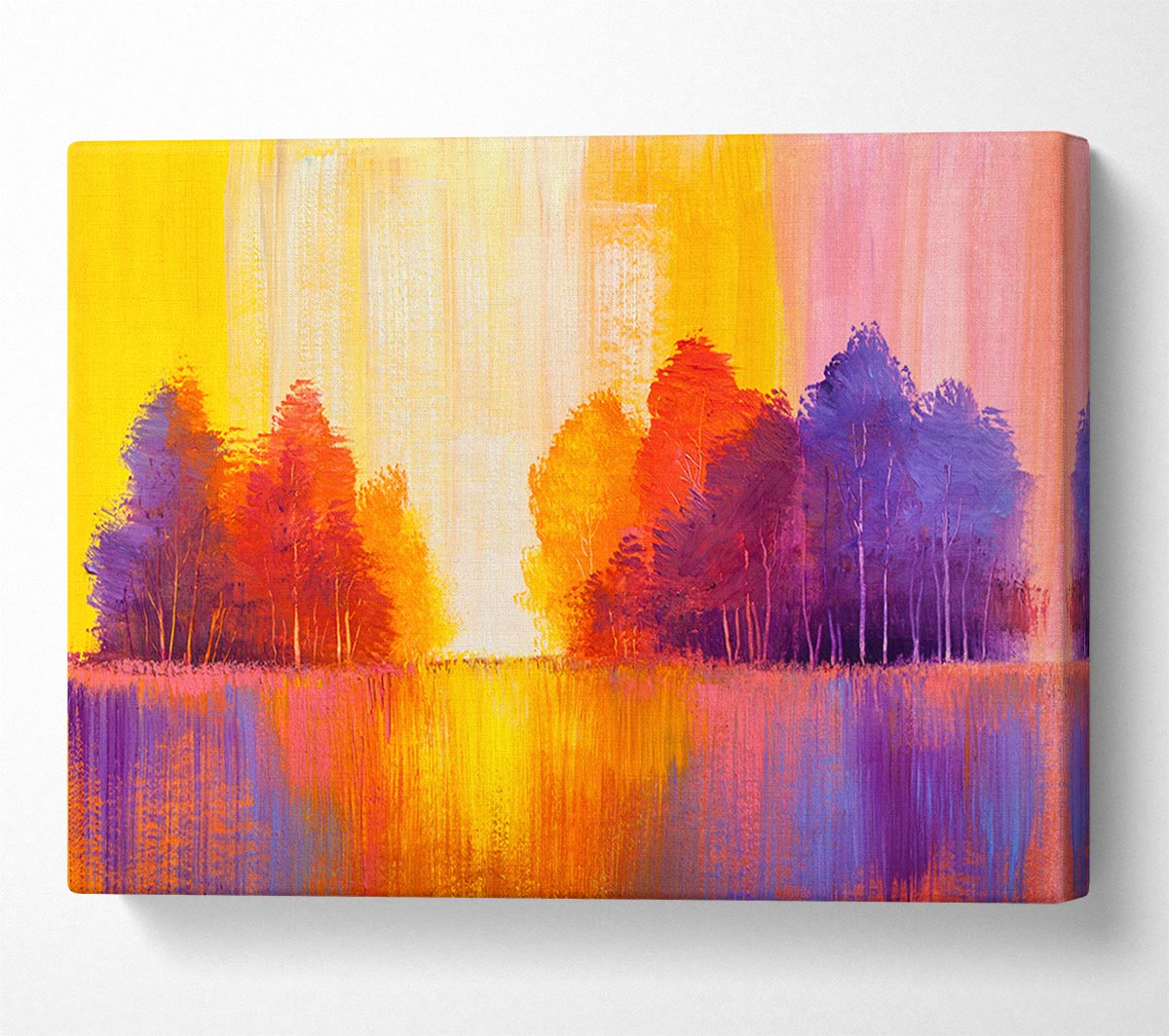Streams Of Colour Forest Canvas Print handmade in the UK. Stretched over a 2 inch thick wooden box frame, ready to hang on your wall.