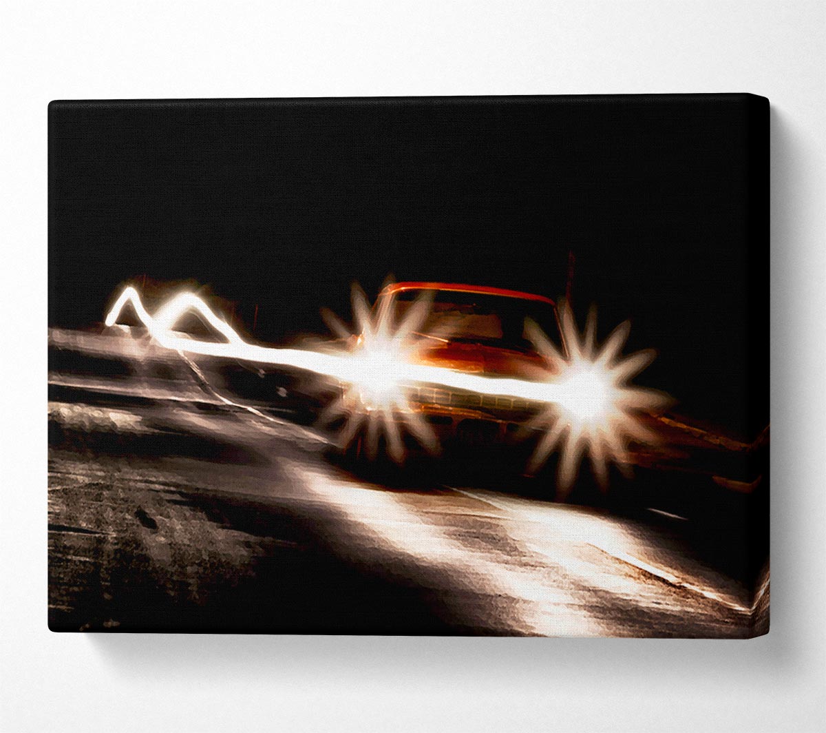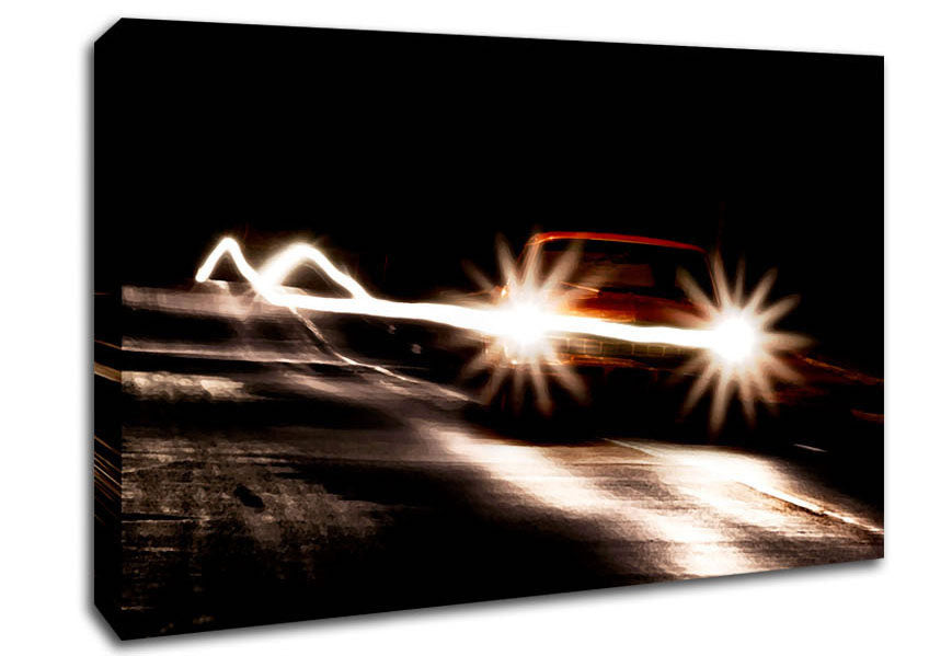 Street Car Race Canvas Print handmade in the UK. Stretched over a 2 inch thick wooden box frame, ready to hang on your wall.