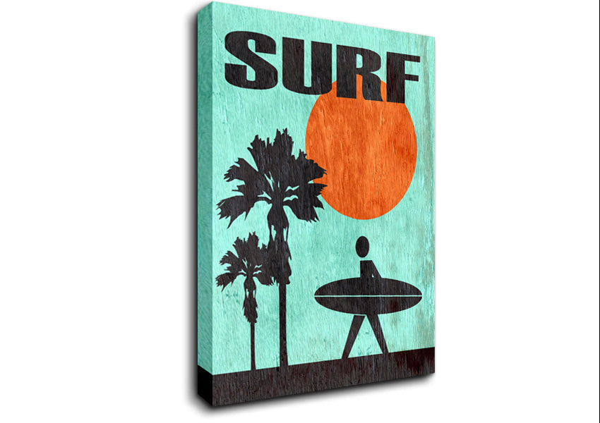 Surf Time Canvas Print handmade in the UK. Stretched over a 2 inch thick wooden box frame, ready to hang on your wall.