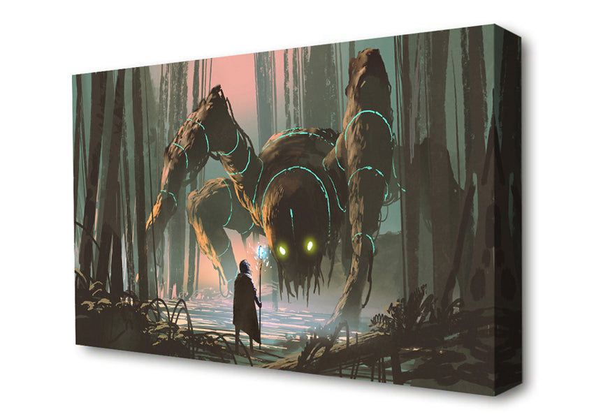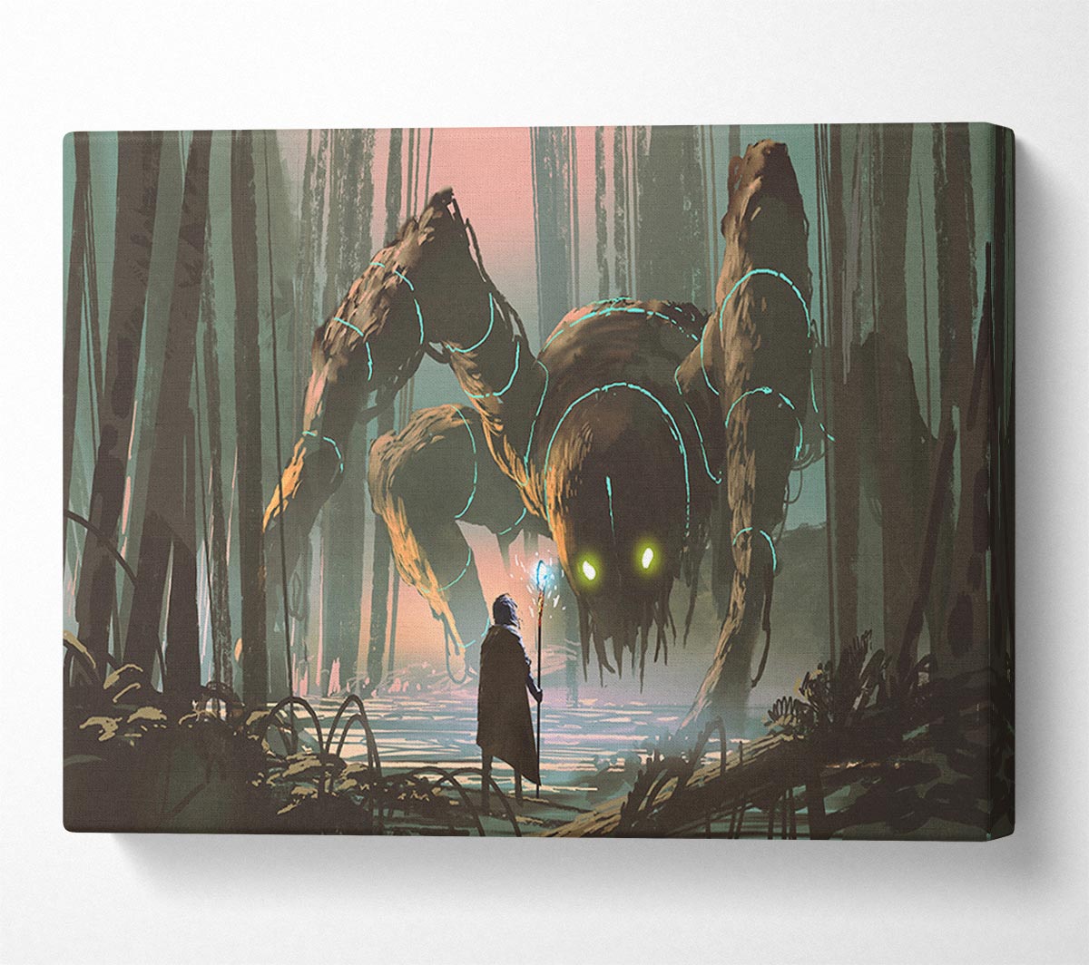 The Arachnid In The Forest Canvas Print handmade in the UK. Stretched over a 2 inch thick wooden box frame, ready to hang on your wall.