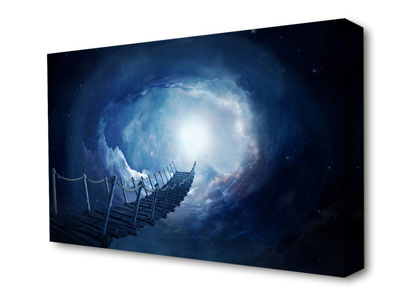 The Bridge Into The Skies Canvas Print handmade in the UK. Stretched over a 2 inch thick wooden box frame, ready to hang on your wall.
