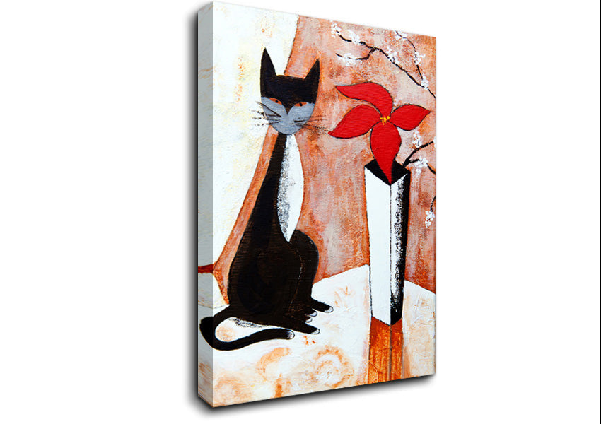 The Cat And The Flower Canvas Print handmade in the UK. Stretched over a 2 inch thick wooden box frame, ready to hang on your wall.