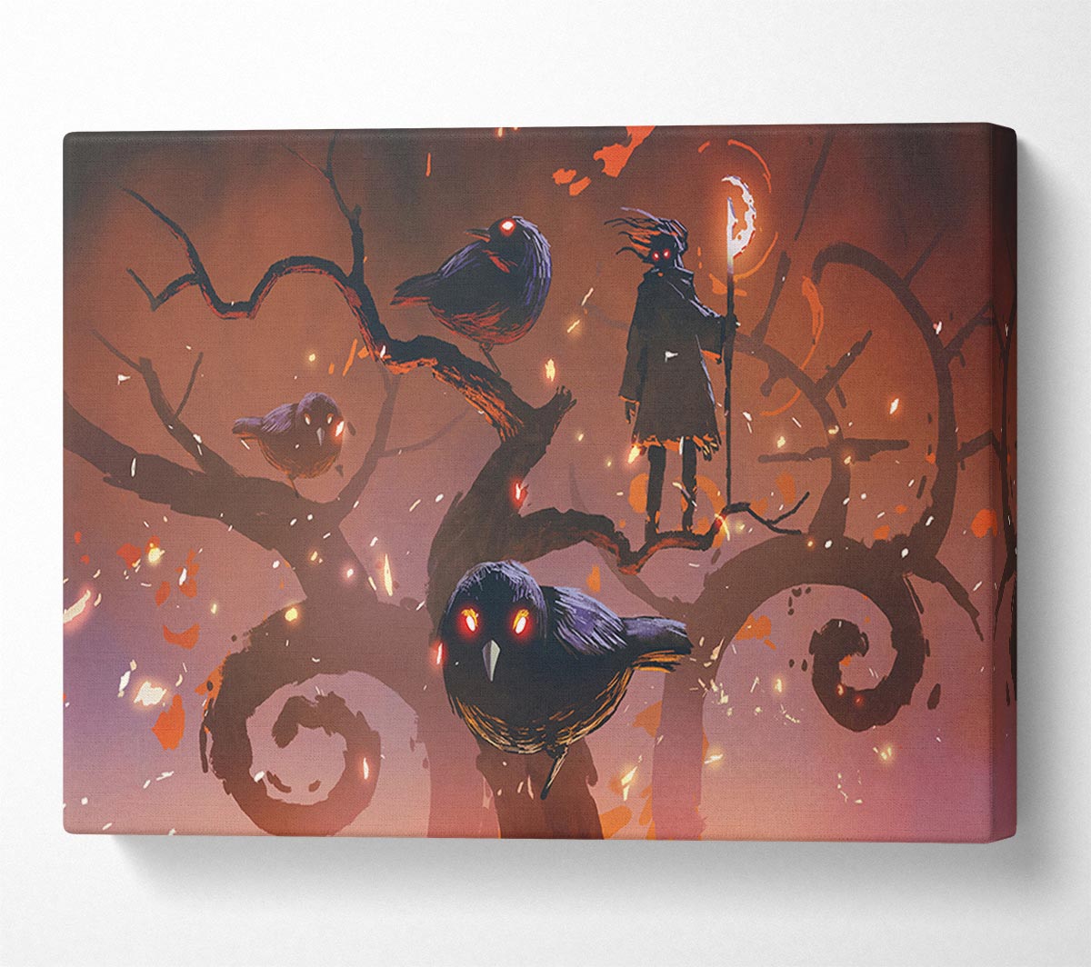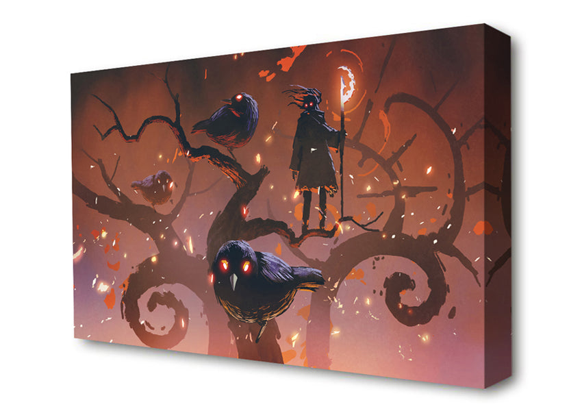 The Crow Branch Canvas Print handmade in the UK. Stretched over a 2 inch thick wooden box frame, ready to hang on your wall.