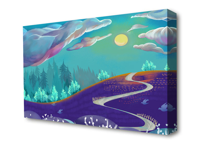 The Road To Pastel Skies Canvas Print handmade in the UK. Stretched over a 2 inch thick wooden box frame, ready to hang on your wall.