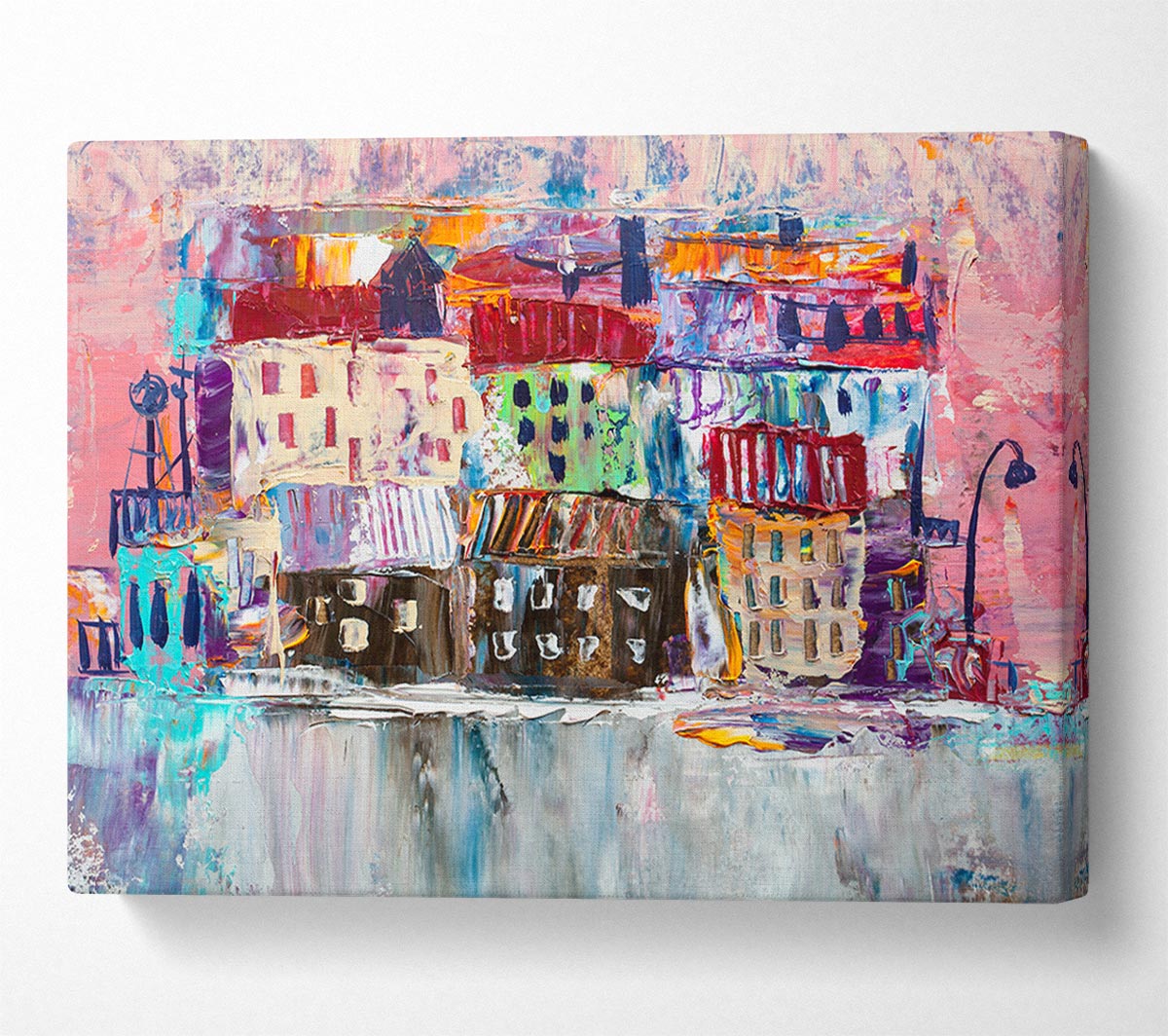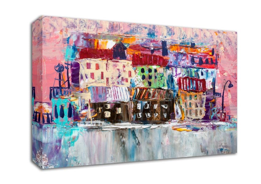 Thick painted city illiustration Canvas Print handmade in the UK. Stretched over a 2 inch thick wooden box frame, ready to hang on your wall.