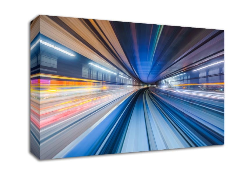 Tunnel of light and colour Canvas Print handmade in the UK. Stretched over a 2 inch thick wooden box frame, ready to hang on your wall.