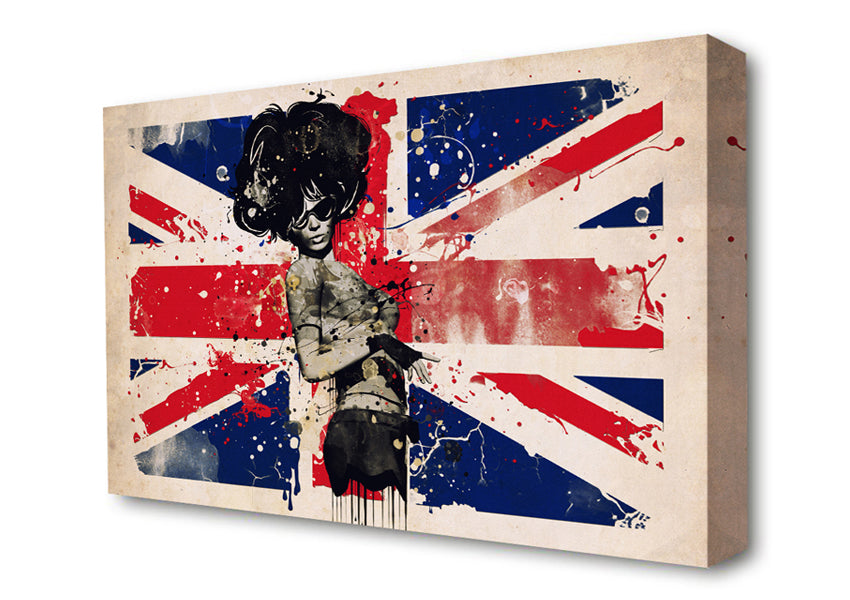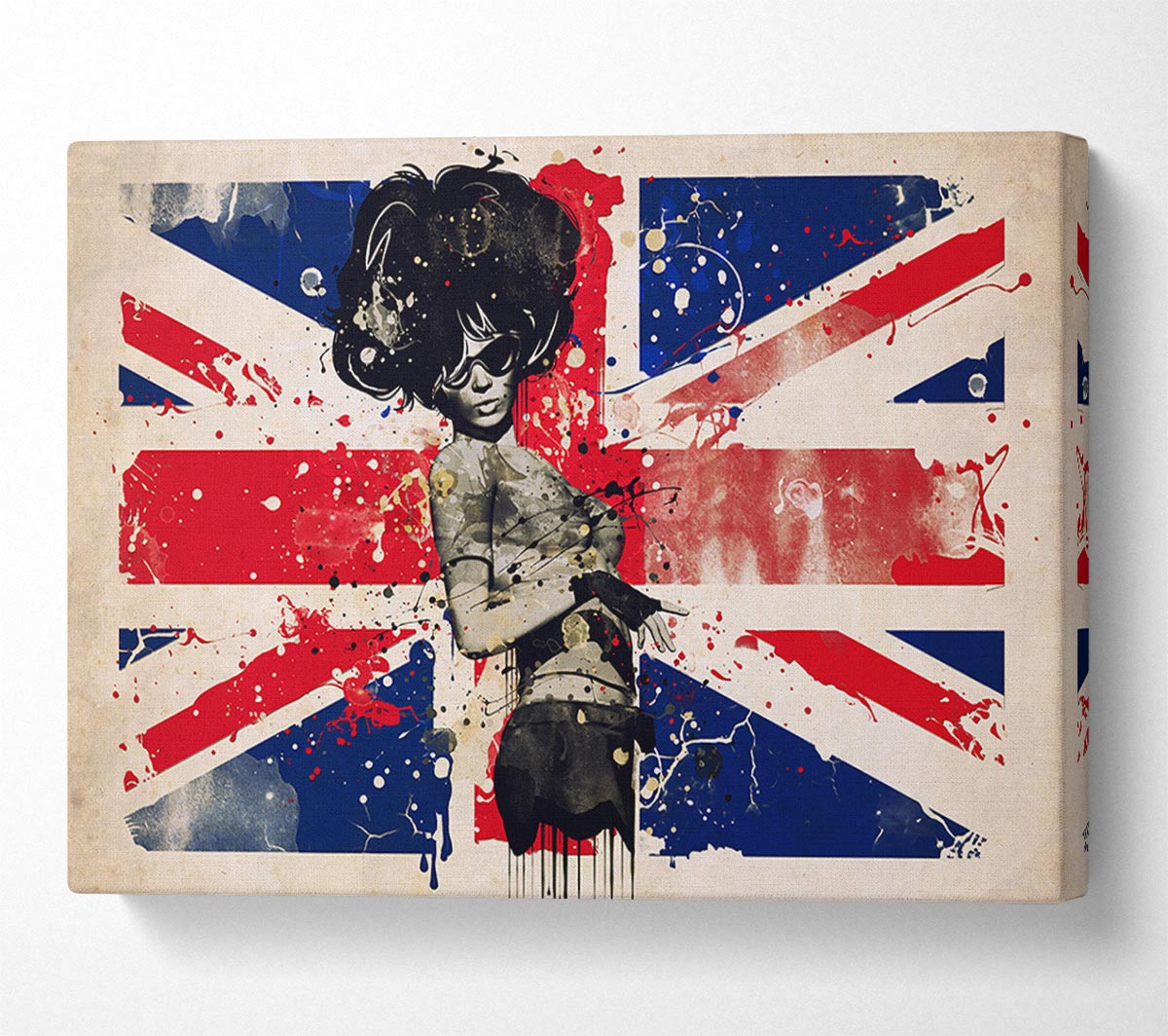 Union Jack Woman Side Canvas Print handmade in the UK. Stretched over a 2 inch thick wooden box frame, ready to hang on your wall.