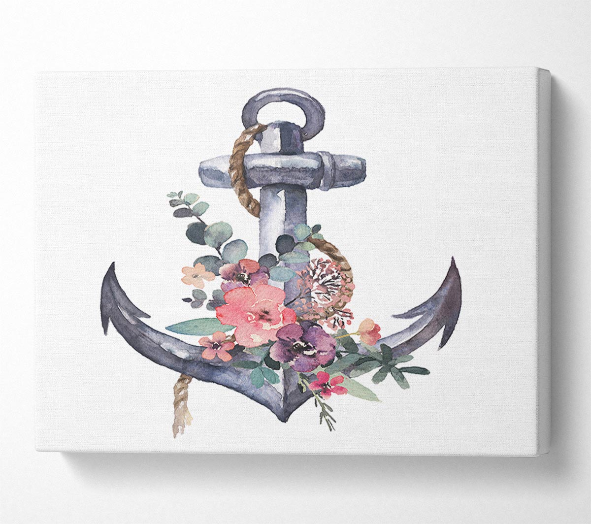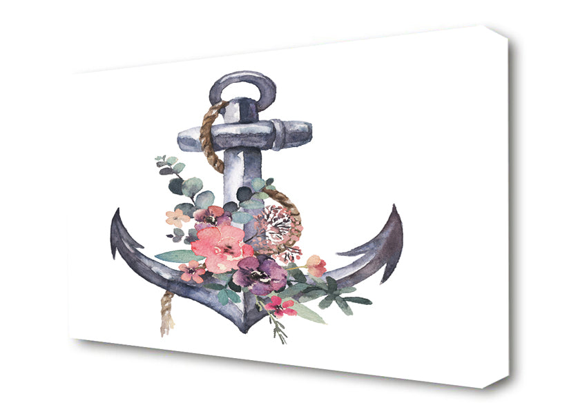 Watercolour Anchor Canvas Print handmade in the UK. Stretched over a 2 inch thick wooden box frame, ready to hang on your wall.
