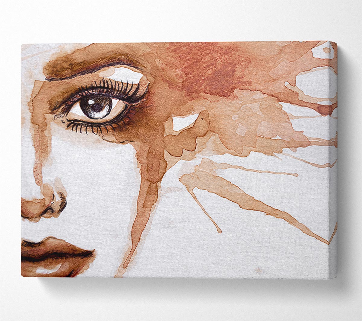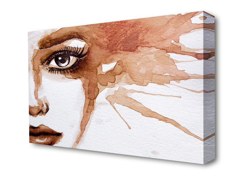 Watercolour Sepia Face Canvas Print handmade in the UK. Stretched over a 2 inch thick wooden box frame, ready to hang on your wall.