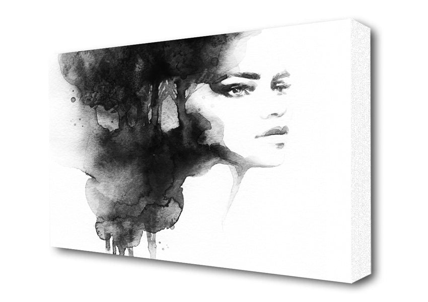 Watercolour Woman Portrait Canvas Print handmade in the UK. Stretched over a 2 inch thick wooden box frame, ready to hang on your wall.
