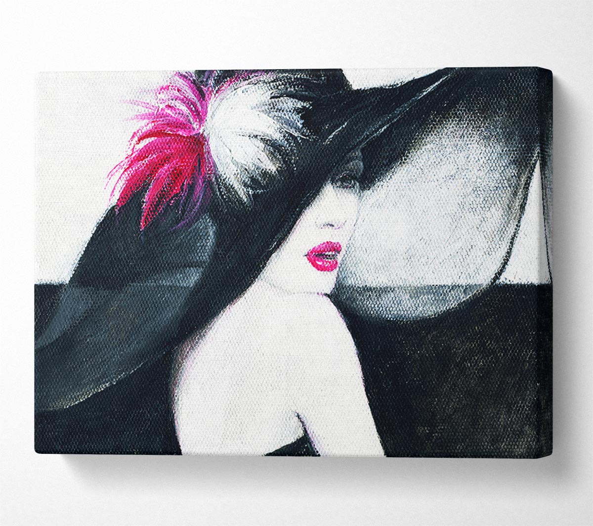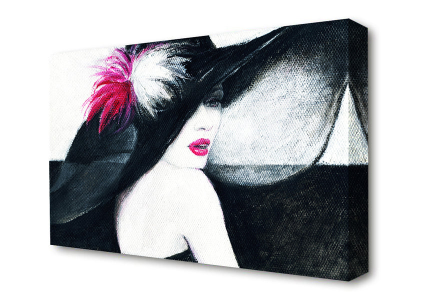 Woman In Black Hat Canvas Print handmade in the UK. Stretched over a 2 inch thick wooden box frame, ready to hang on your wall.