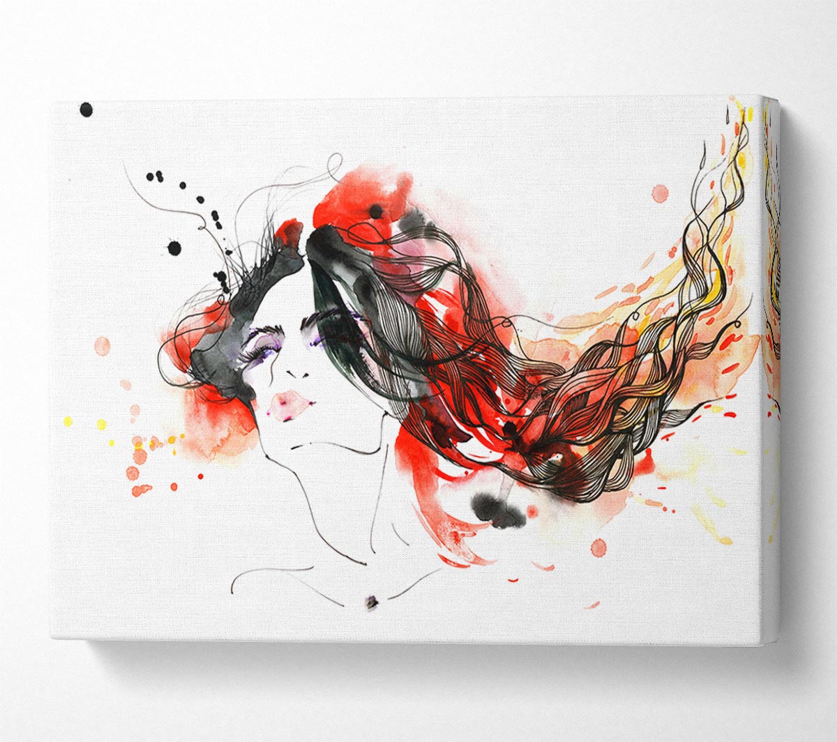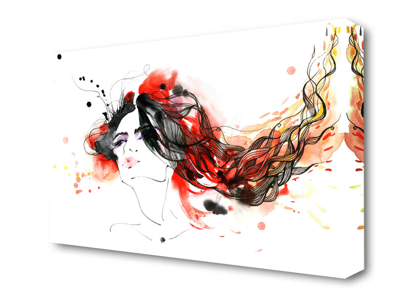 Woman In Ink And Red Canvas Print handmade in the UK. Stretched over a 2 inch thick wooden box frame, ready to hang on your wall.