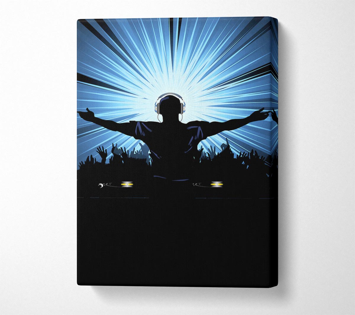 DJ Blue Sun Lights Canvas Print handmade in the UK. Stretched over a 2 inch thick wooden box frame, ready to hang on your wall.