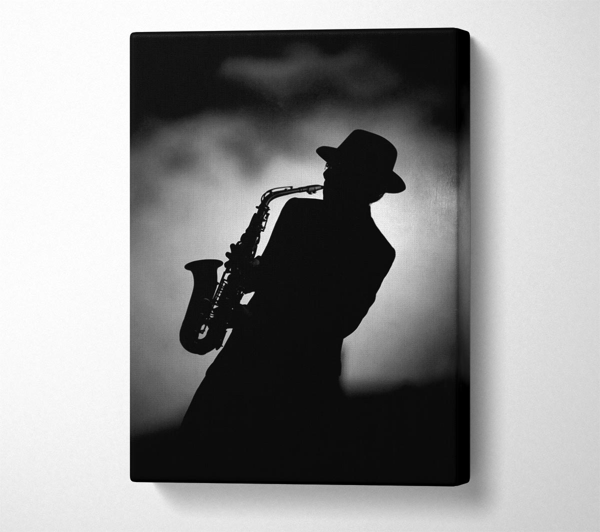 Jazz Player 1 Canvas Print handmade in the UK. Stretched over a 2 inch thick wooden box frame, ready to hang on your wall.